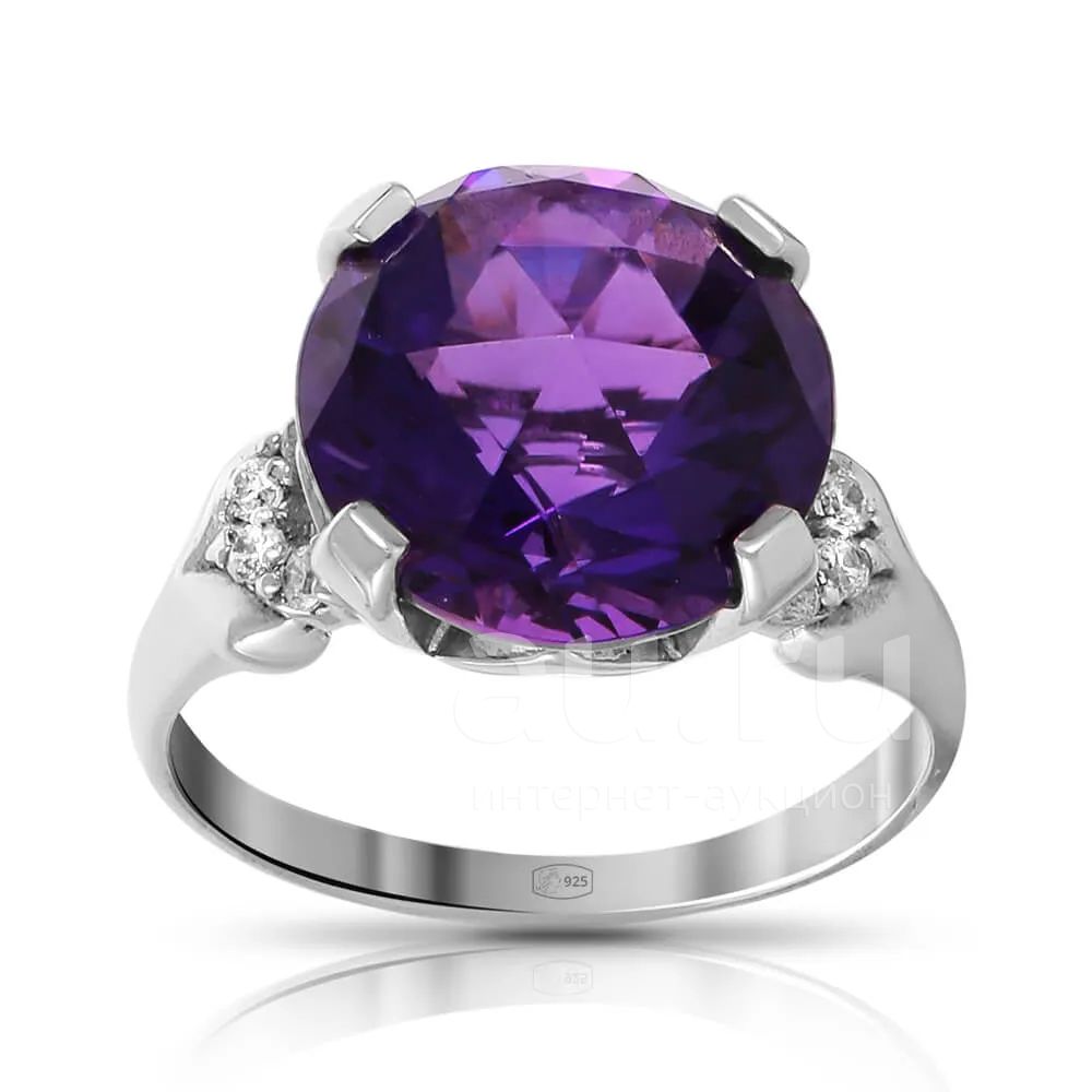 Кольцо из серебра с аметистом и фианитами