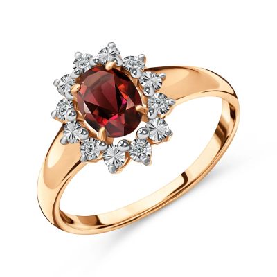 Золотое кольцо с гранатом и бриллиантами