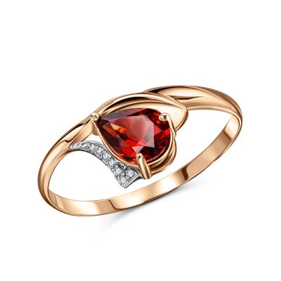 Золотое кольцо с гранатом и фианитами с родированием