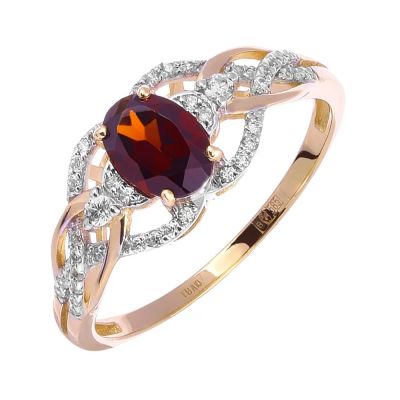 Кольцо из золота с гранатом и фианитами