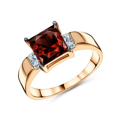 Золотое кольцо с гранатом и фианитами