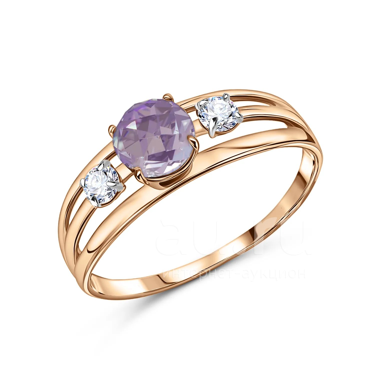 159 990руб.Золотое кольцо с аметистом и фианитами с родированием