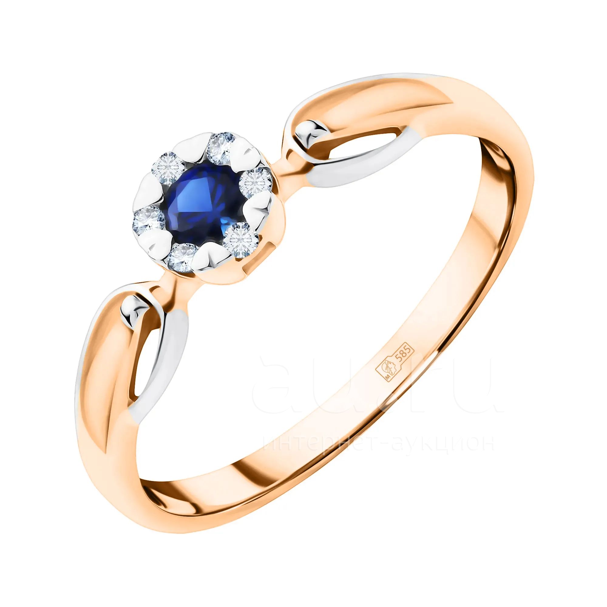 Золотое кольцо с сапфиром и бриллиантами