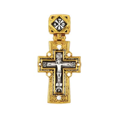 Серебряный крест с фианитами с позолотой и чернением