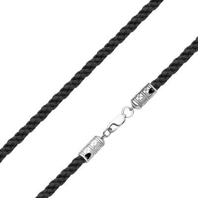 Текстильный шнурок с серебряным замком с чернением