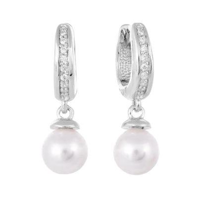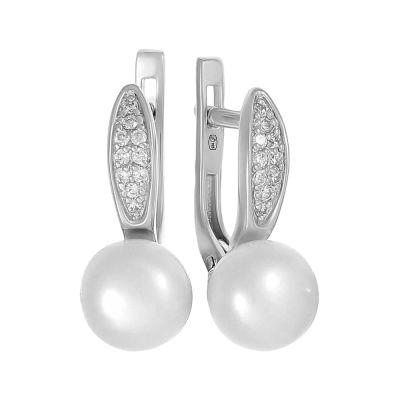 Серьги из серебра с жемчугом и фианитами