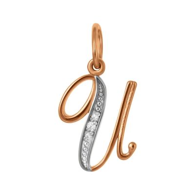 Золотая подвеска буква И с фианитами