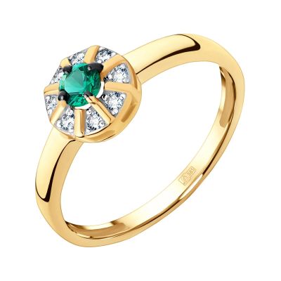 9 360руб.Золотое кольцо с изумрудом и бриллиантами с родированием
