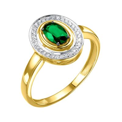 Золотое кольцо с изумрудом и бриллиантами с родированием
