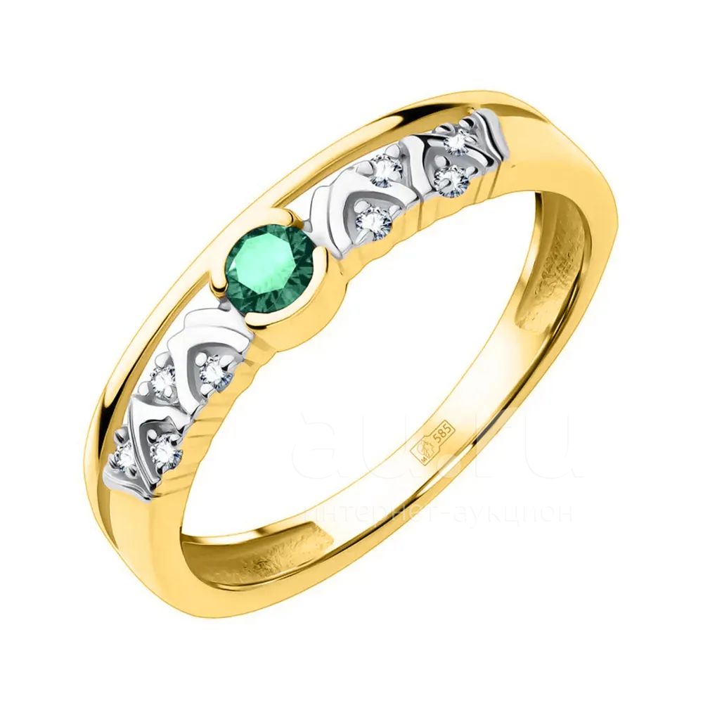 Золотое кольцо с изумрудом и бриллиантами с родированием