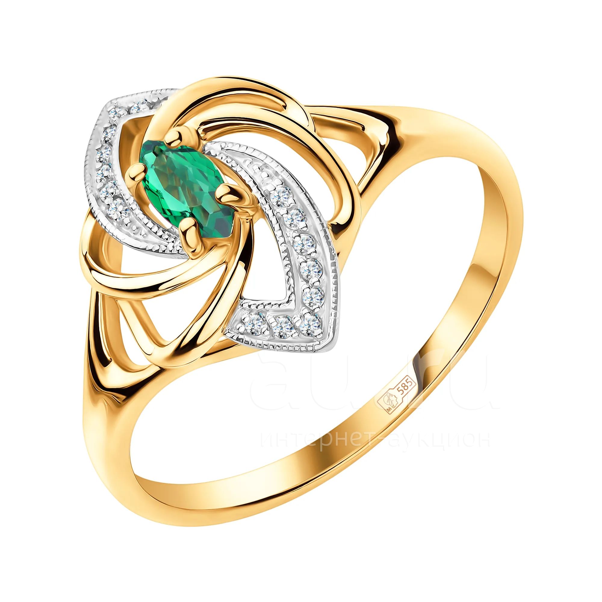 24 990руб.Золотое кольцо с изумрудом и бриллиантами