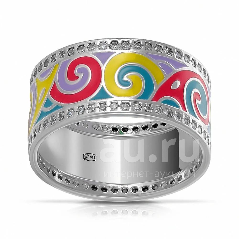 Кольцо из серебра с эмалью и фианитами