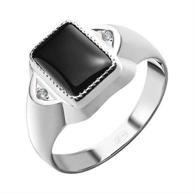 Кольцо-печатка из серебра с ониксом и фианитами
