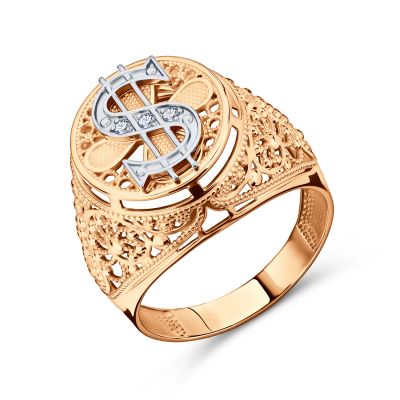 Золотая печатка с фианитами