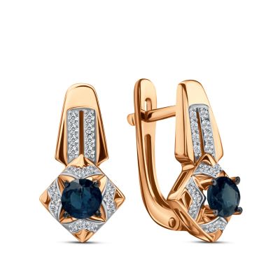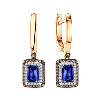 Золотые серьги с сапфирами и бриллиантами с родированием