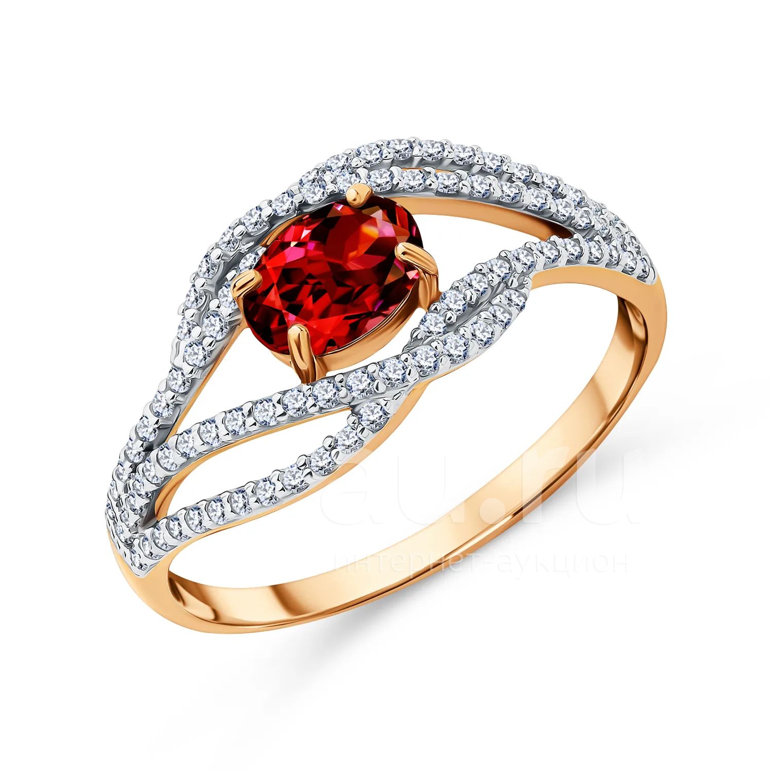 54 990руб.Золотое кольцо с гранатом и фианитами с родированием
