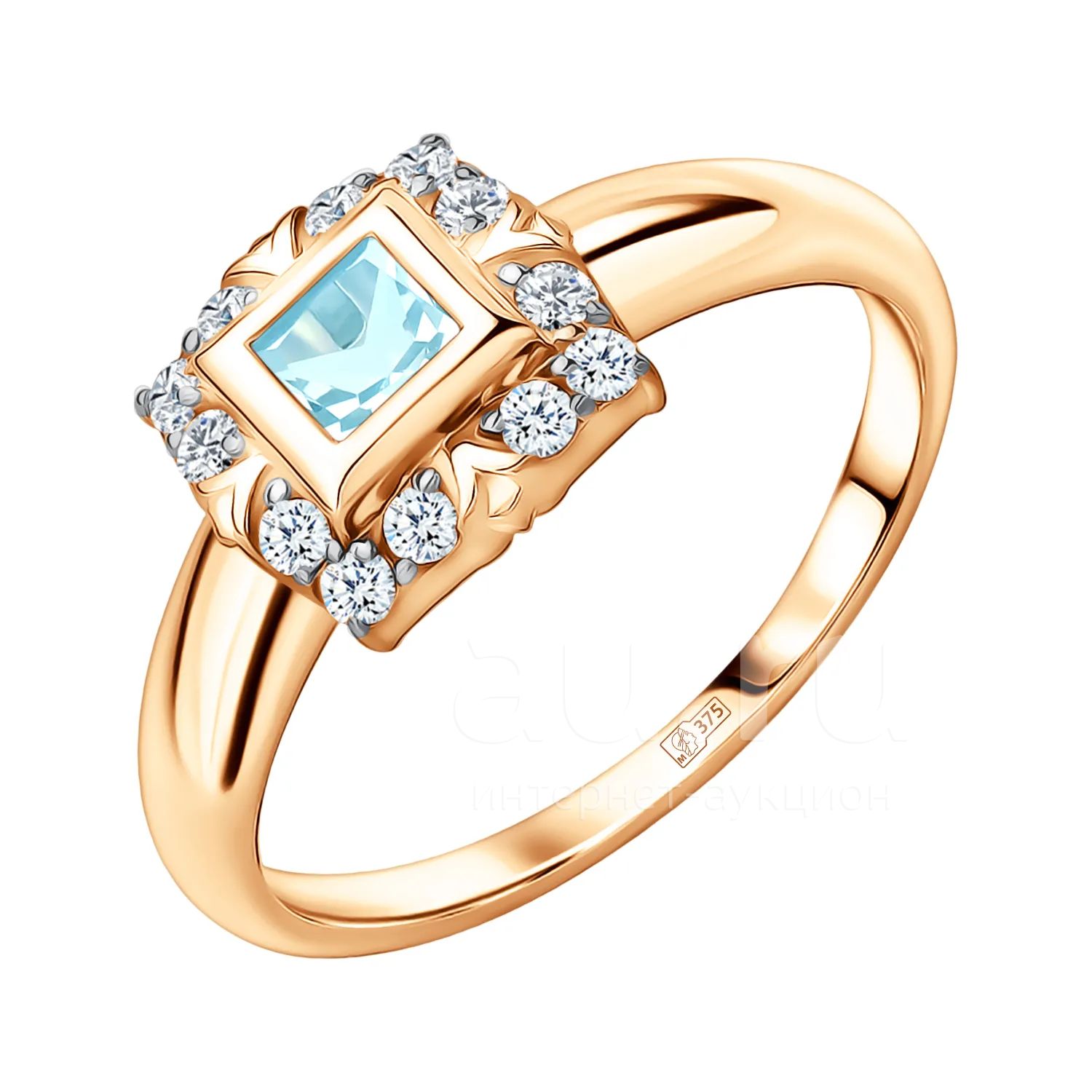 155 270руб.Золотое кольцо с топазом Sky и фианитами с родированием