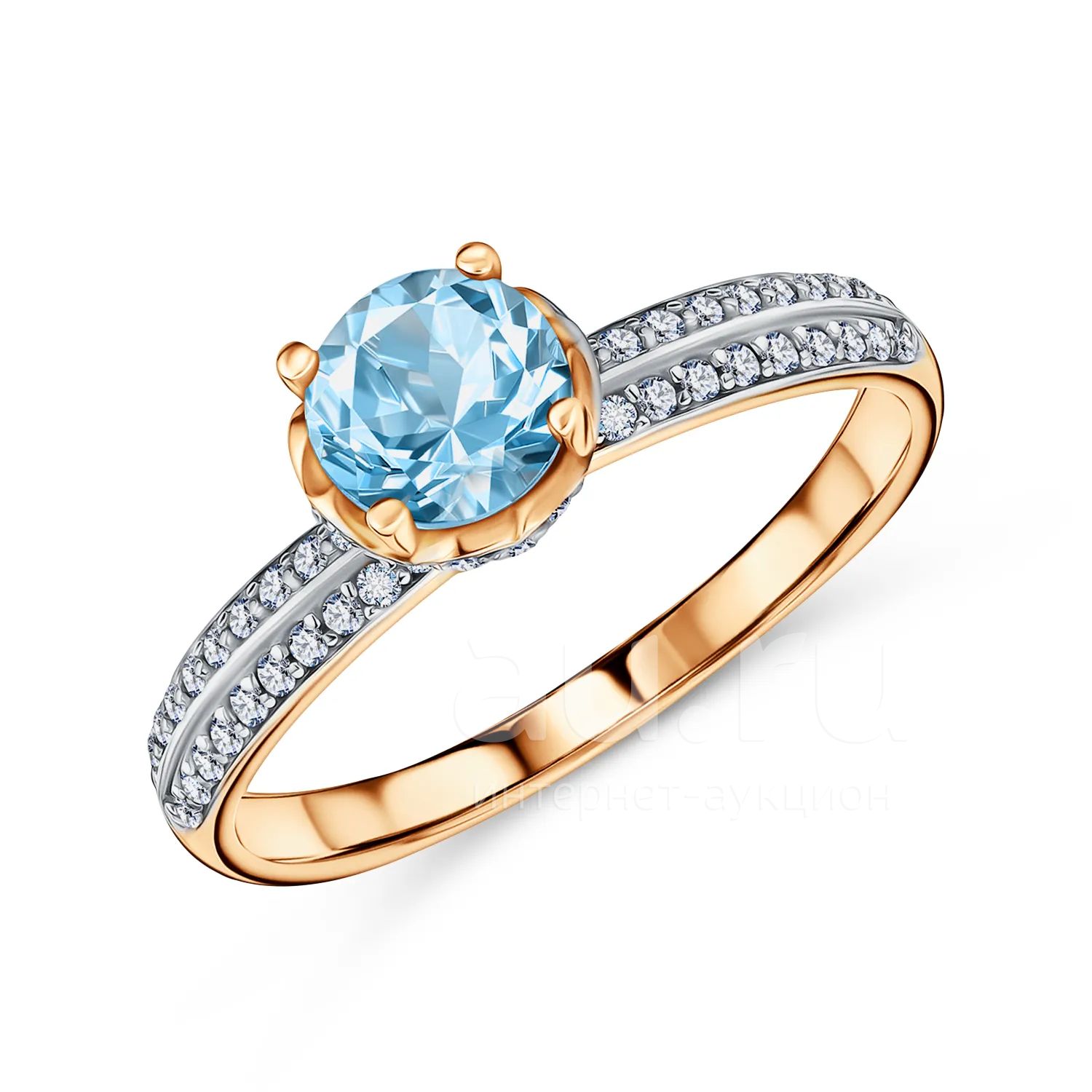 20 990руб.Золотое кольцо с топазом Sky и фианитам с родированием