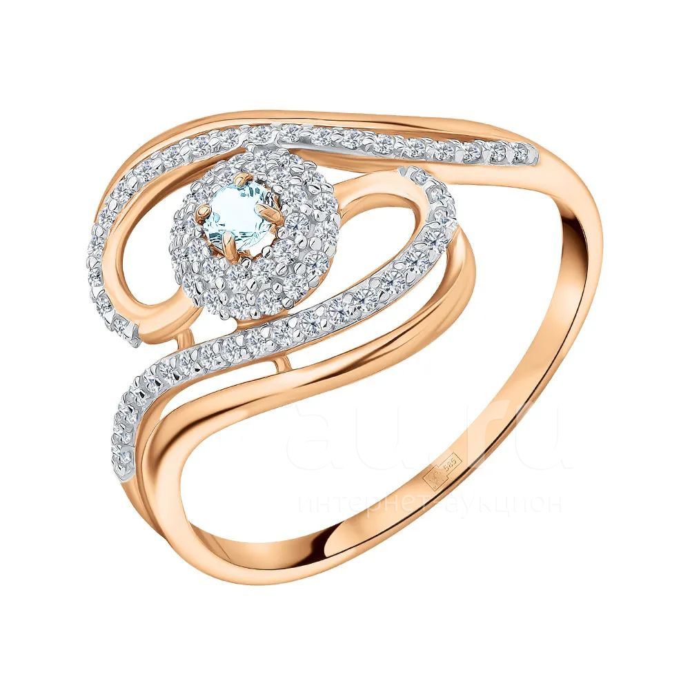 Золотое кольцо с топазом Sky и фианитами с родированием