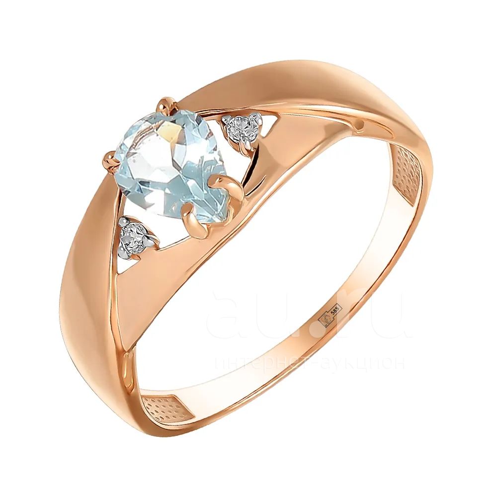 Золотое кольцо с топазом Sky и фианитами