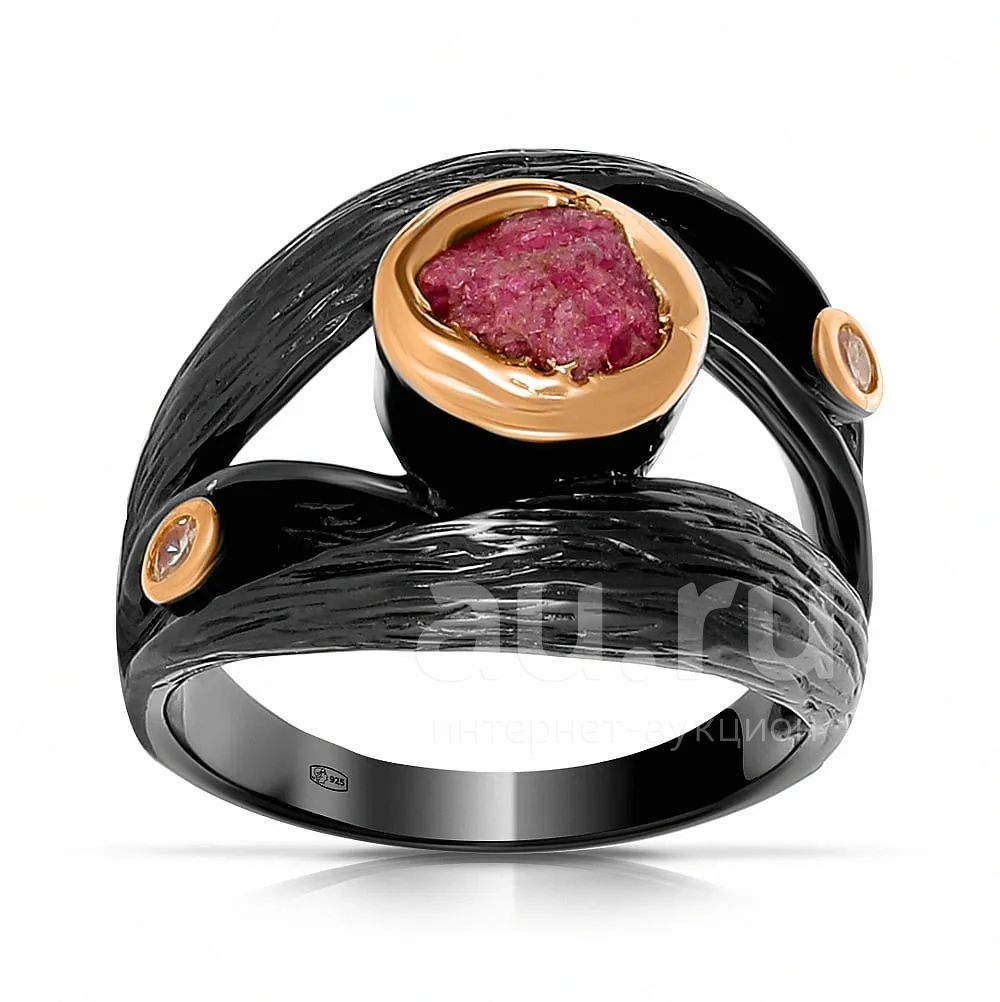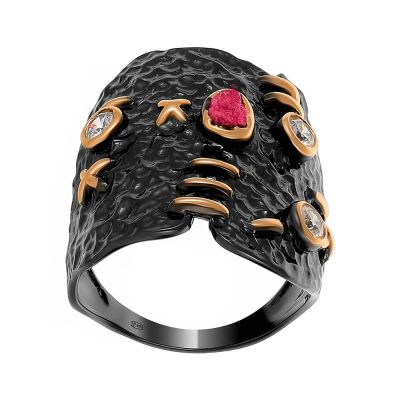 Кольцо из серебра с рубином и фианитами