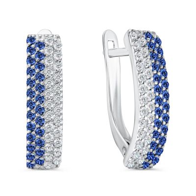 Серебряные серьги с сапфирами и фианитами с родированием