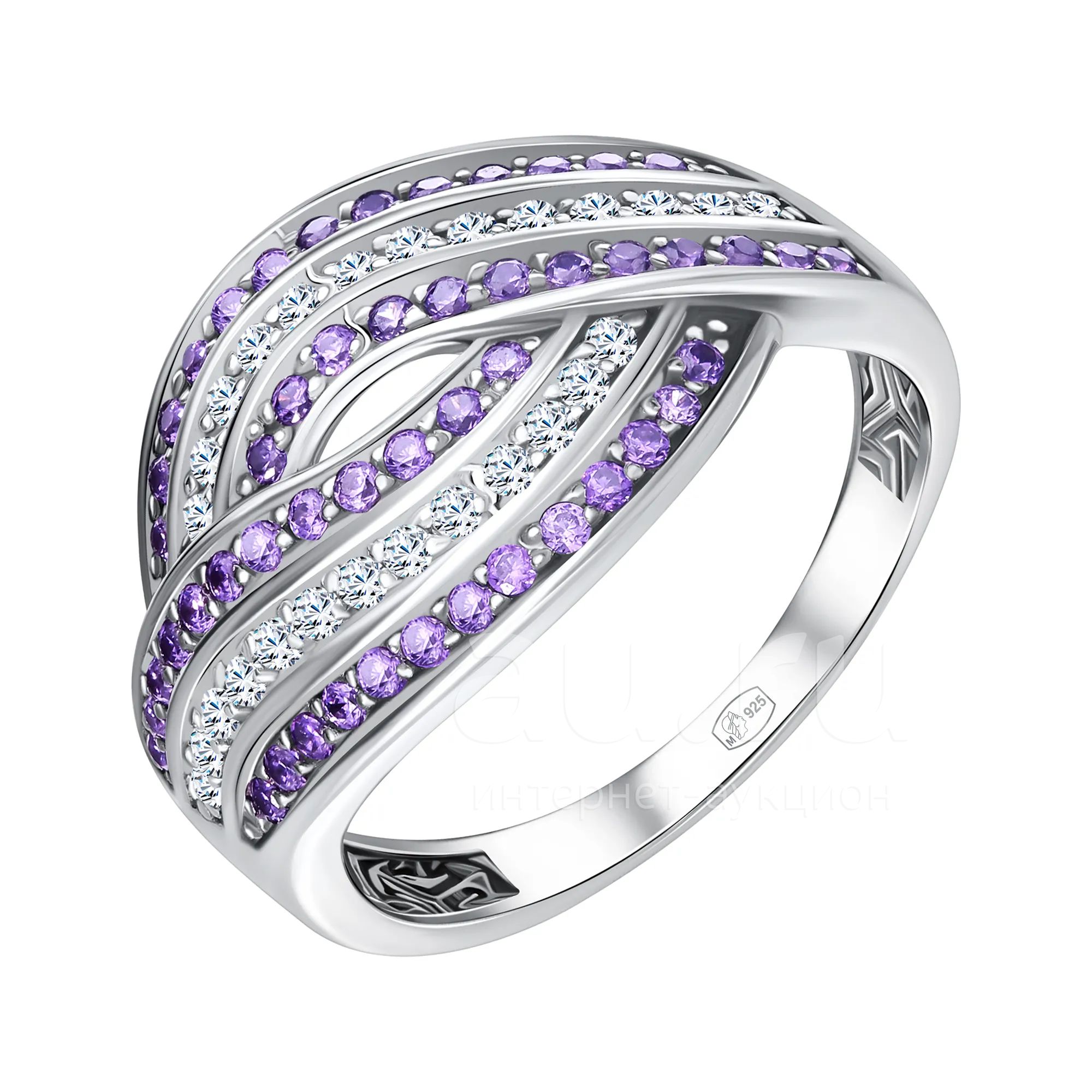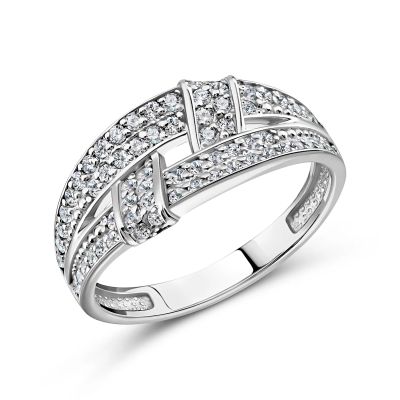 Серебряное кольцо с фианитами и родированием