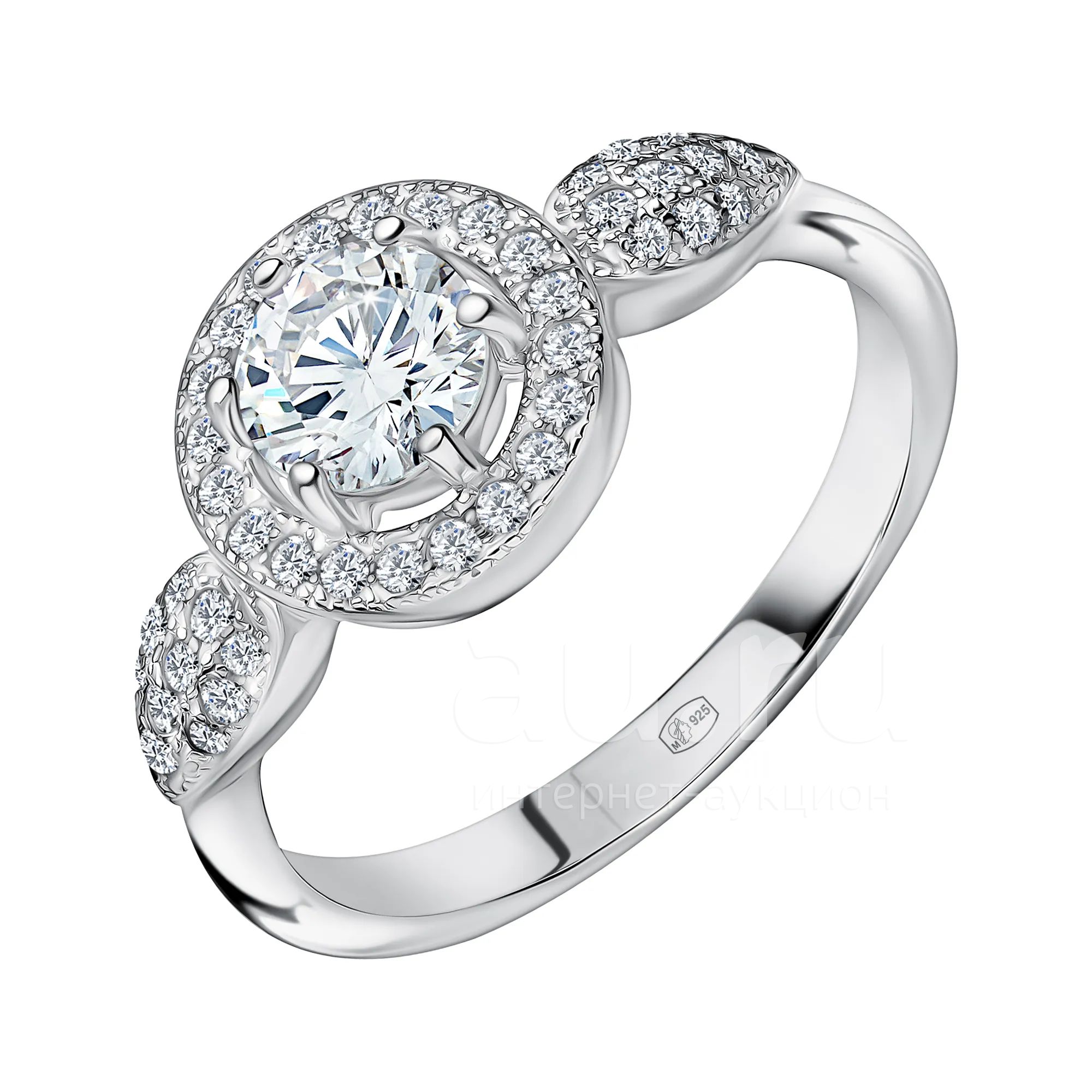 Серебряное кольцо с фианитами и родированием