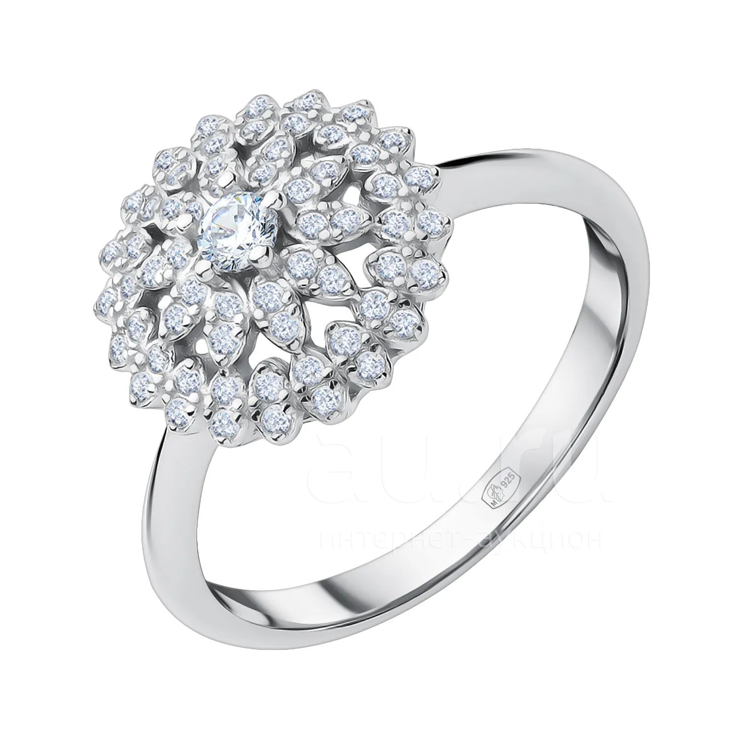 Серебряное кольцо с фианитами и родированием