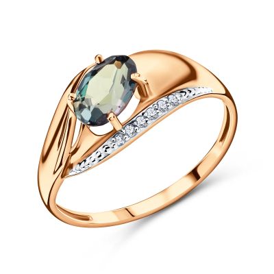 Золотое кольцо с александритом и фианитами