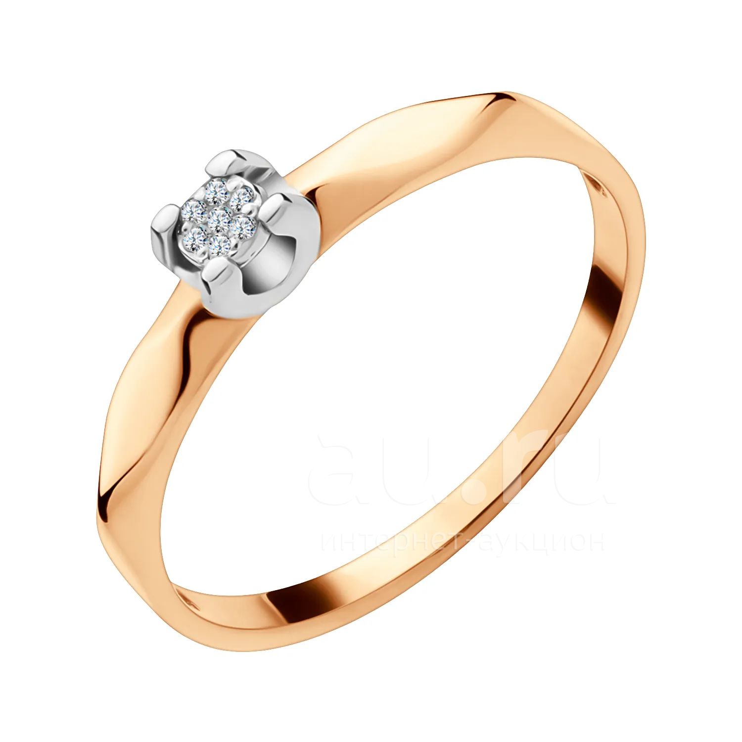 Золотое кольцо с бриллиантами и родированием