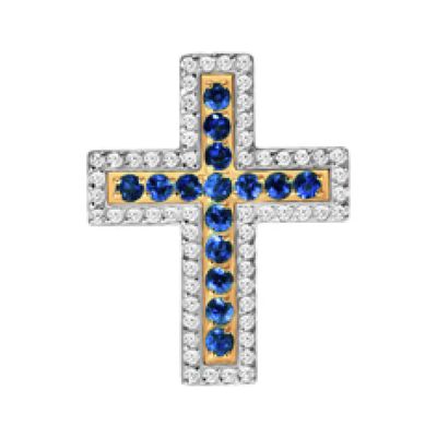 22 990руб.Золотая подвеска Крест с сапфирами и бриллиантами с родированием