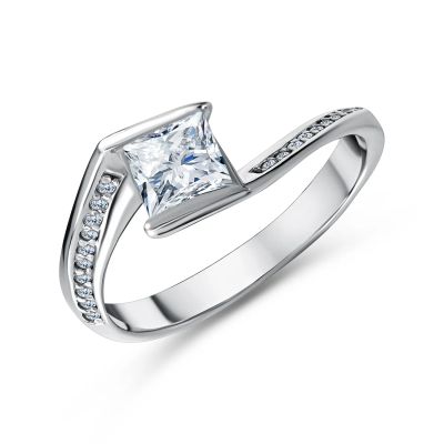 Серебряное кольцо с фианитами и родированием