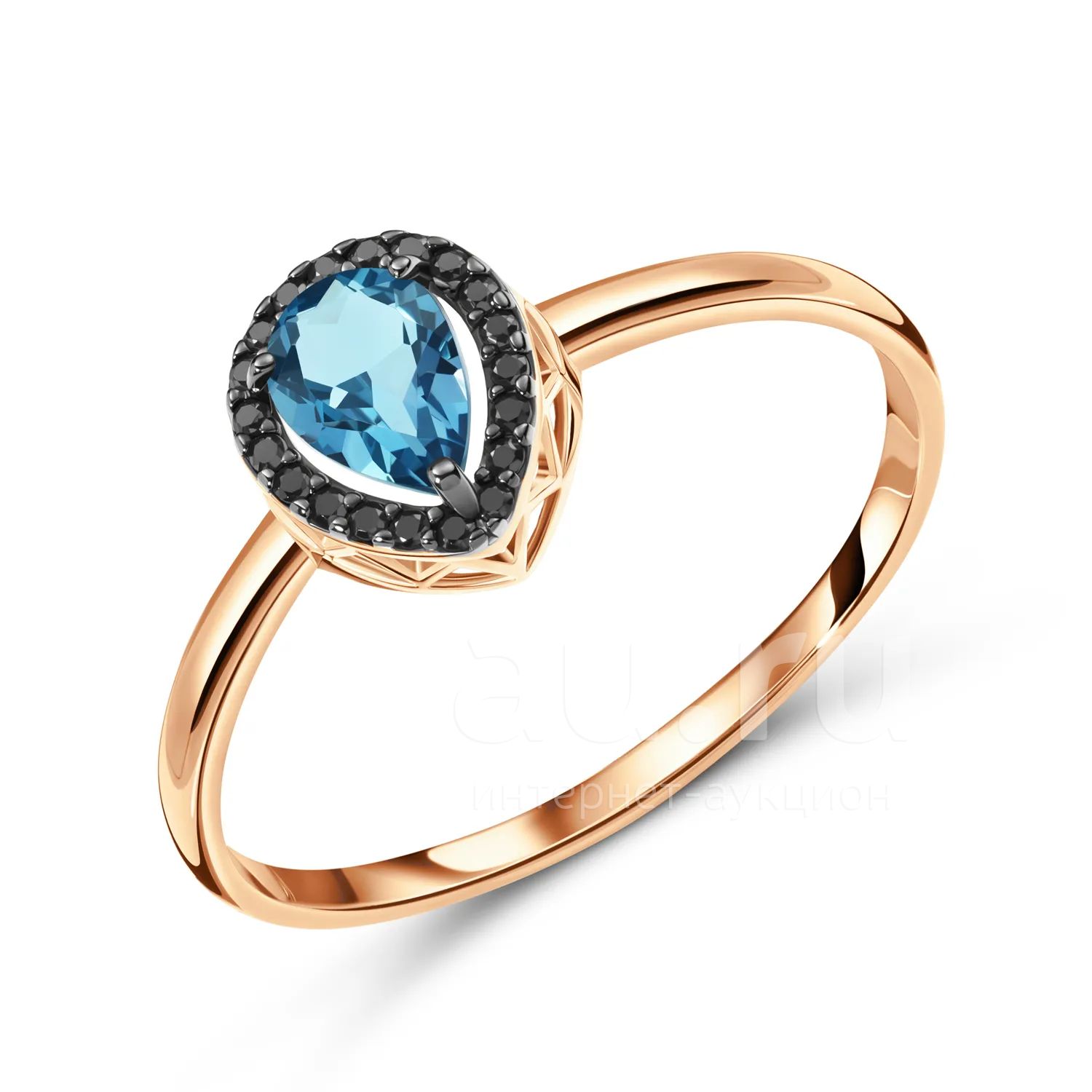 19 490руб.Золотое кольцо с London топазом и фианитами с черным родированием