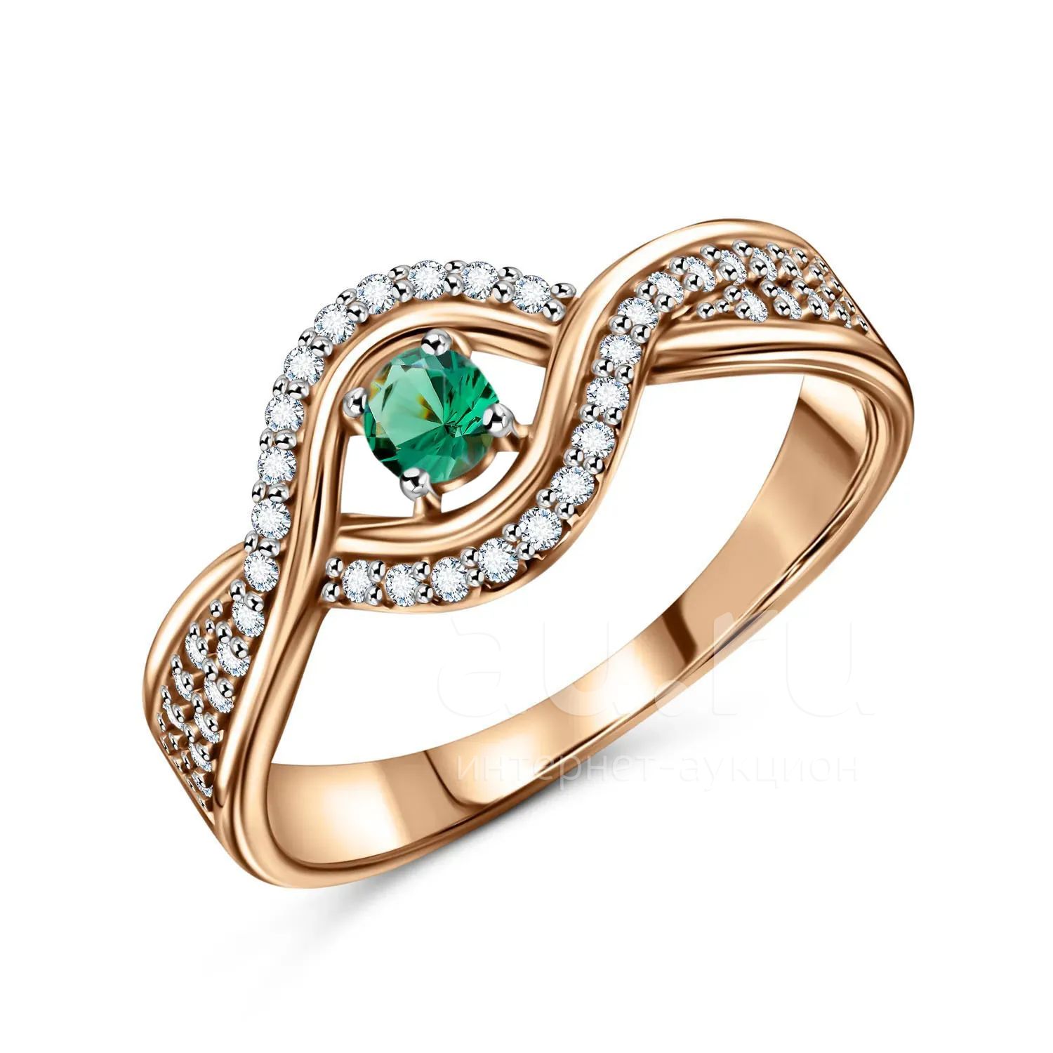 Кольцо из золота с гранатом и фианитами
