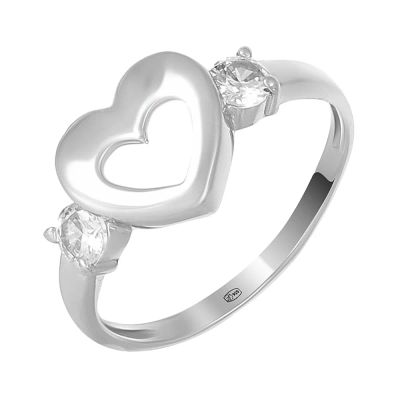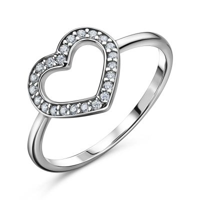 Серебряное кольцо Сердце с фианитами и родированием