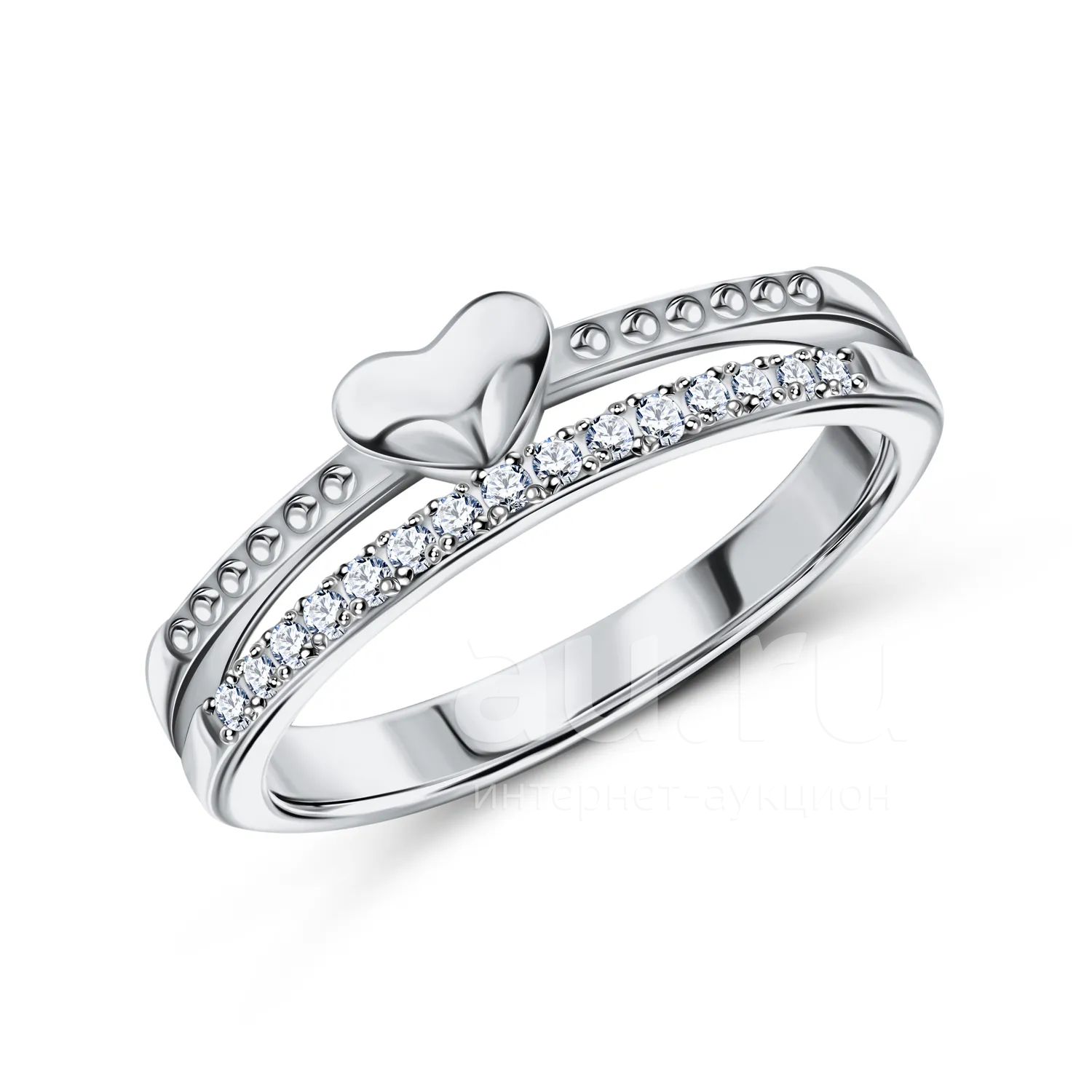 11 400руб.Серебряное кольцо Сердце с фианитами и родированием