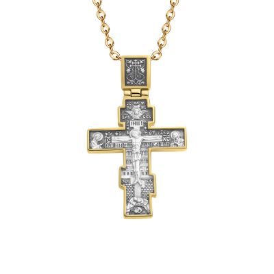 Серебряный крест Да Воскреснет Бог с позолотой и чернением
