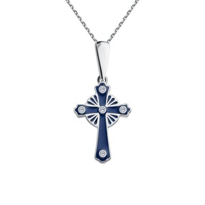 Серебряный крест с эмалью и родированием