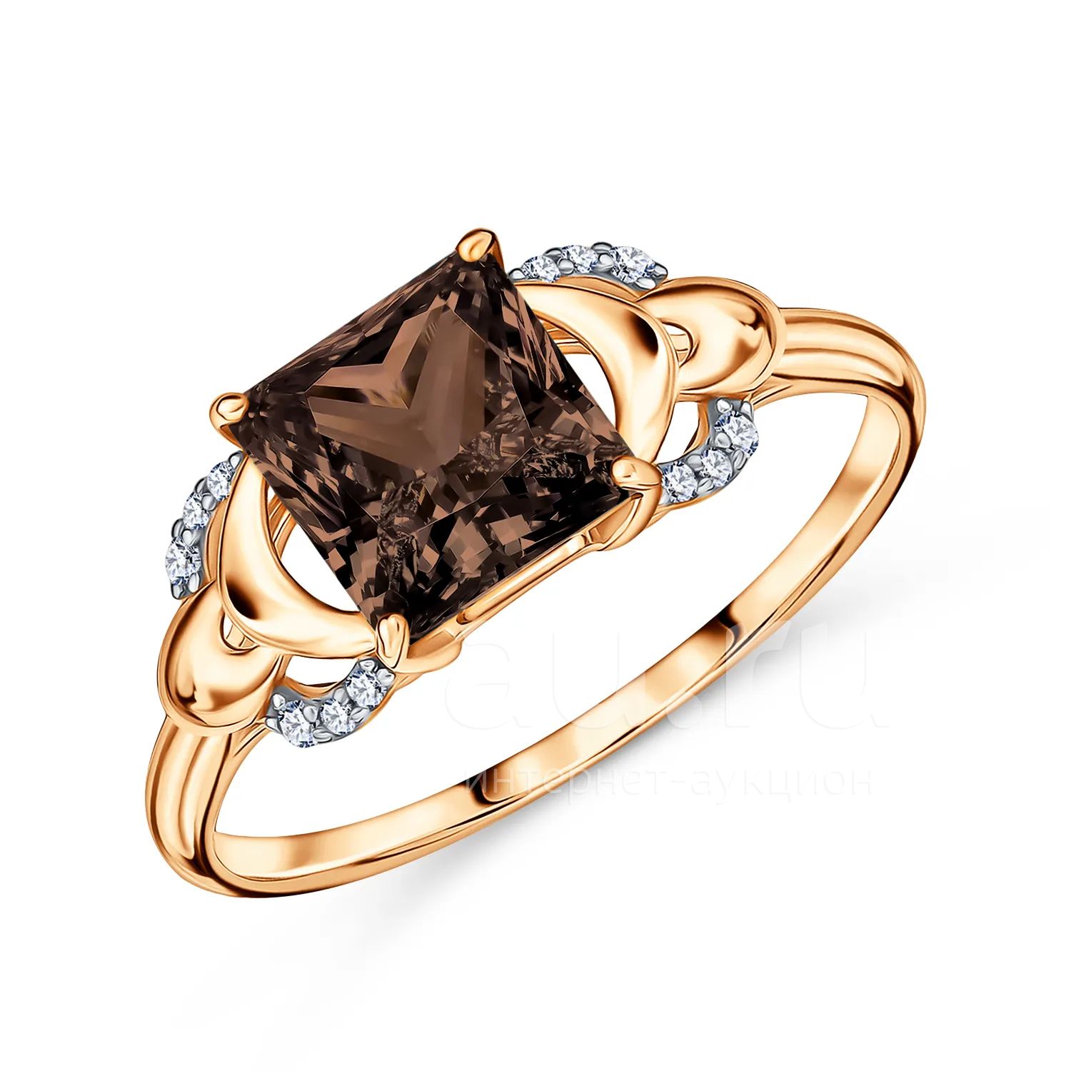 17 460руб.Золотое кольцо с раухтопазом и фианитами с родированием