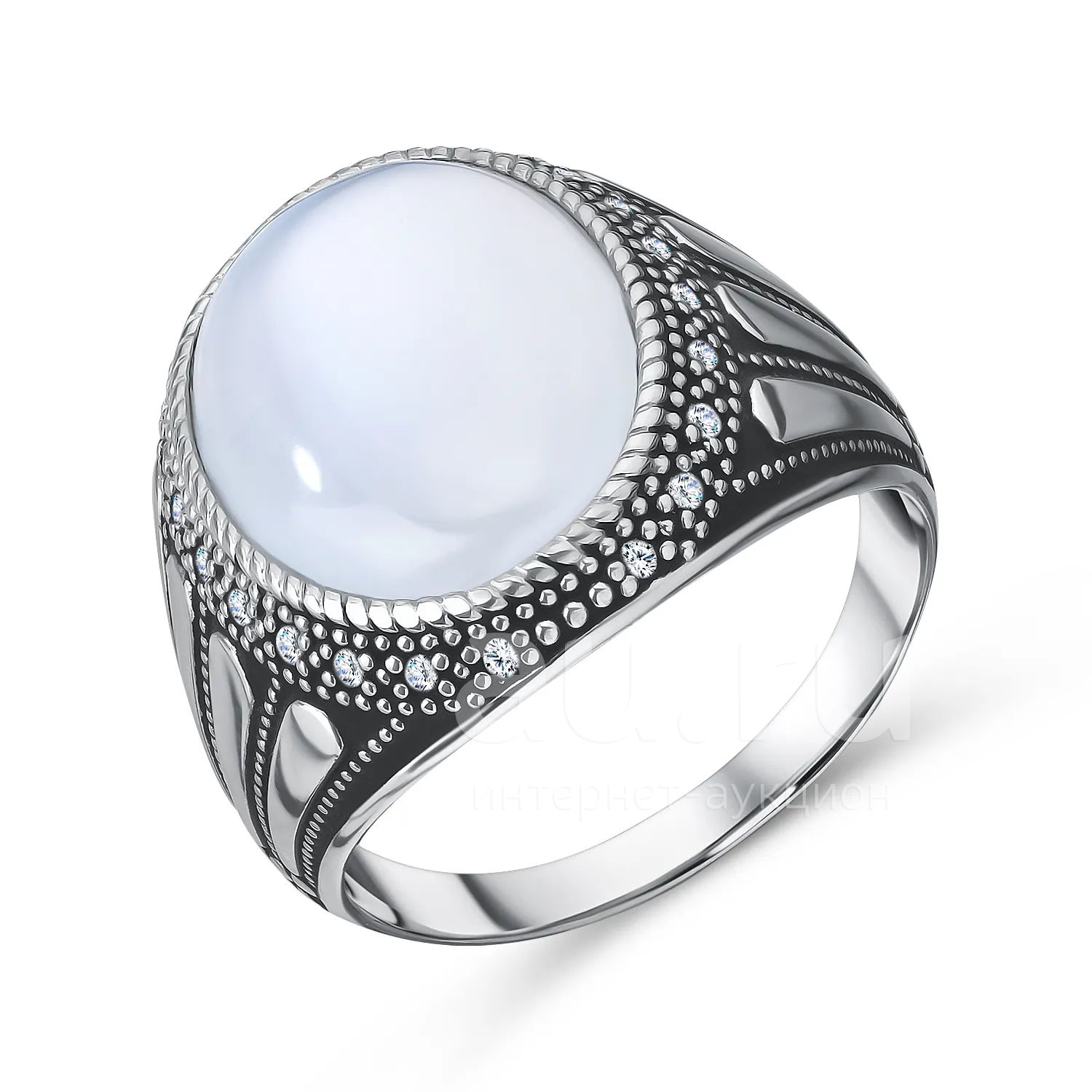 45 070руб.Серебряная печатка с халцедоном и фианитами с родированием