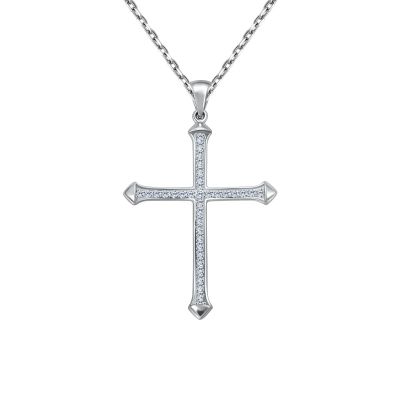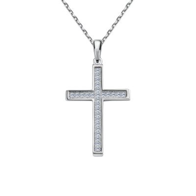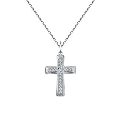 Серебряная подвеска Крест с фианитами и родированием