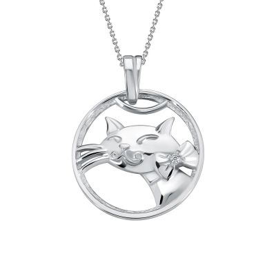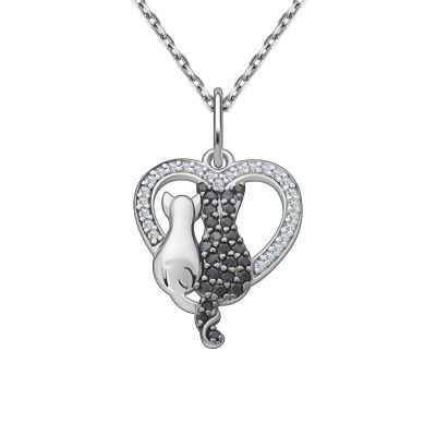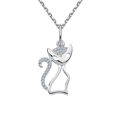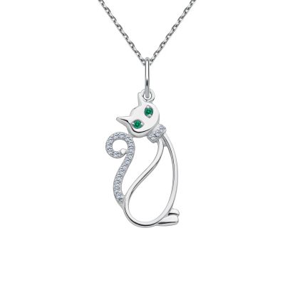 Серебряная подвеска Кошка с фианитами