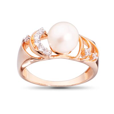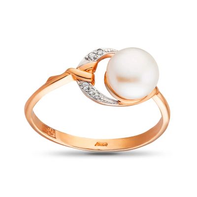 Кольцо из золота с жемчугом и фианитами