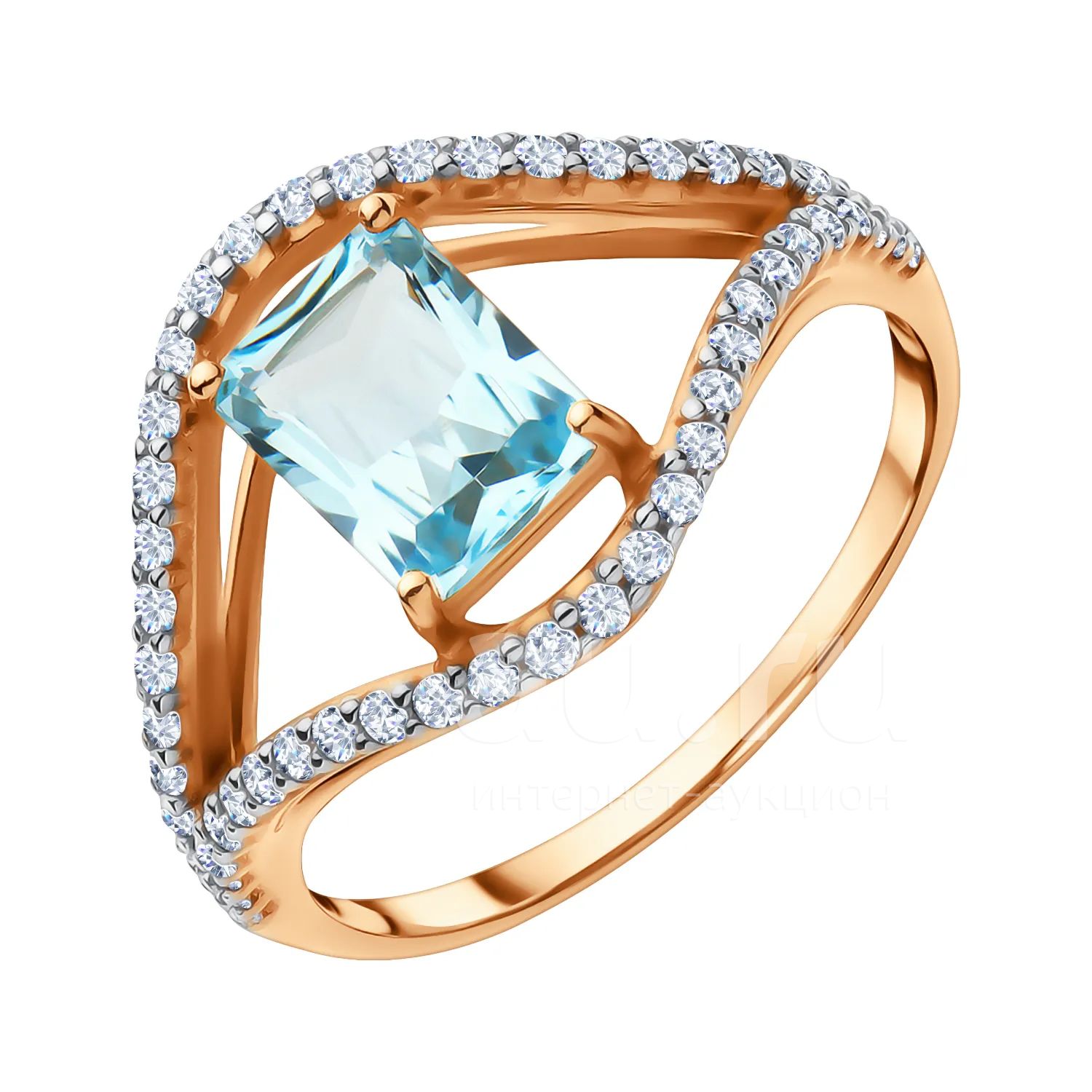 24 990руб.Золотое кольцо с топазом Sky и фианитами с родированием