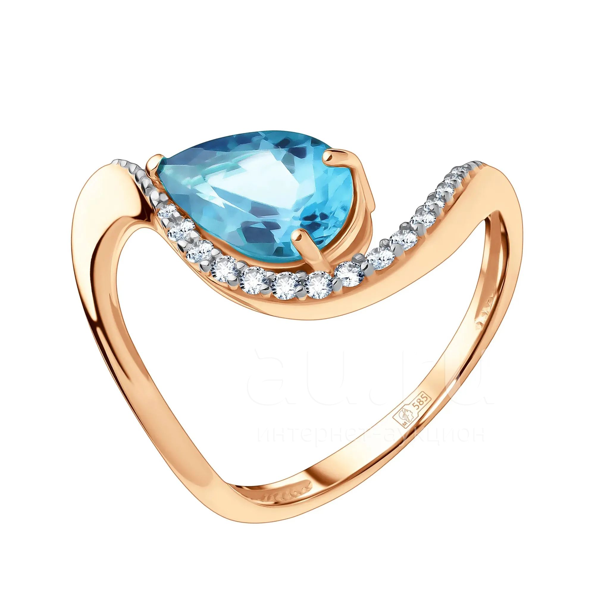 20 180руб.Золотое кольцо с топазом и фианитами с родированием