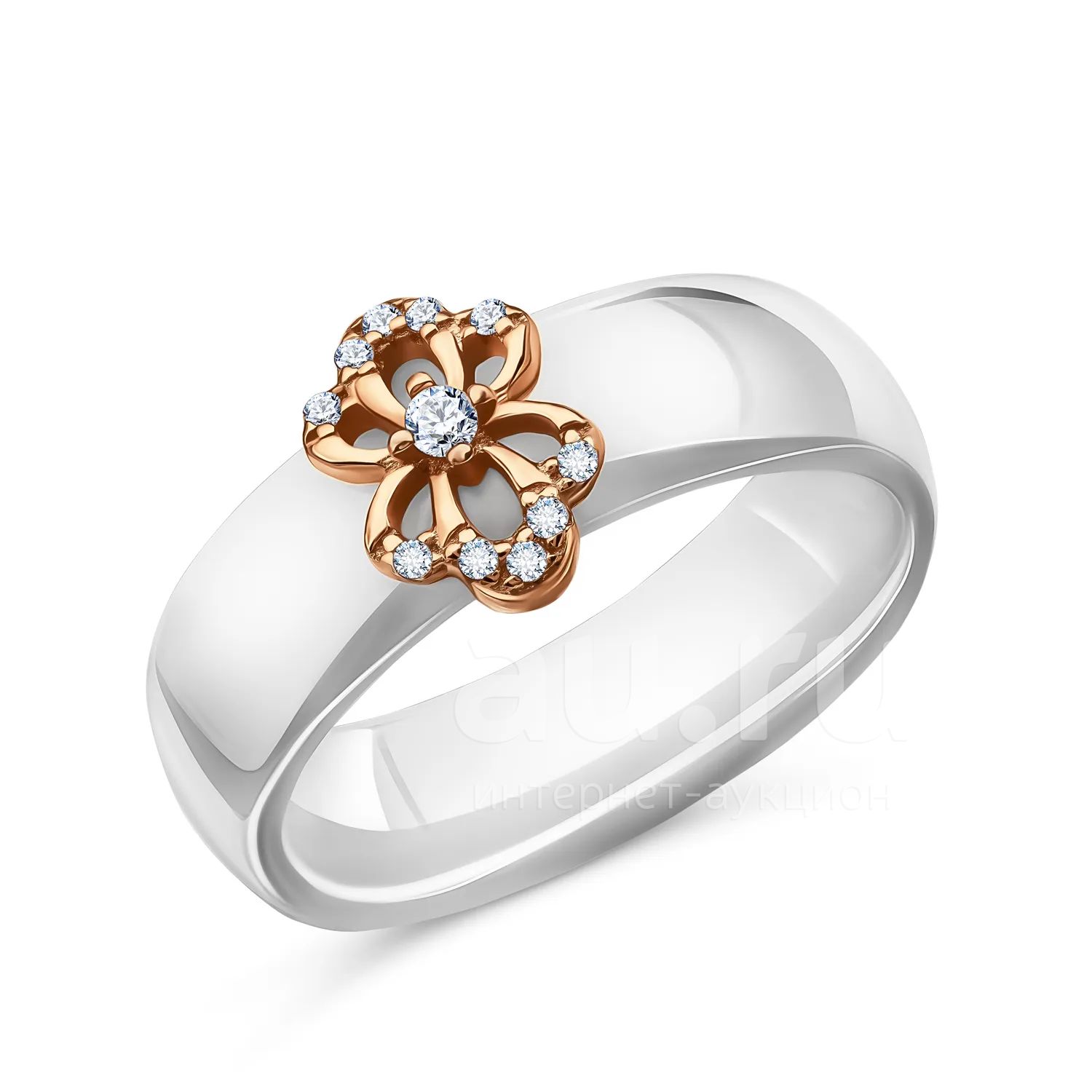 Серебряное кольцо с керамикой и фианитами с позолотой
