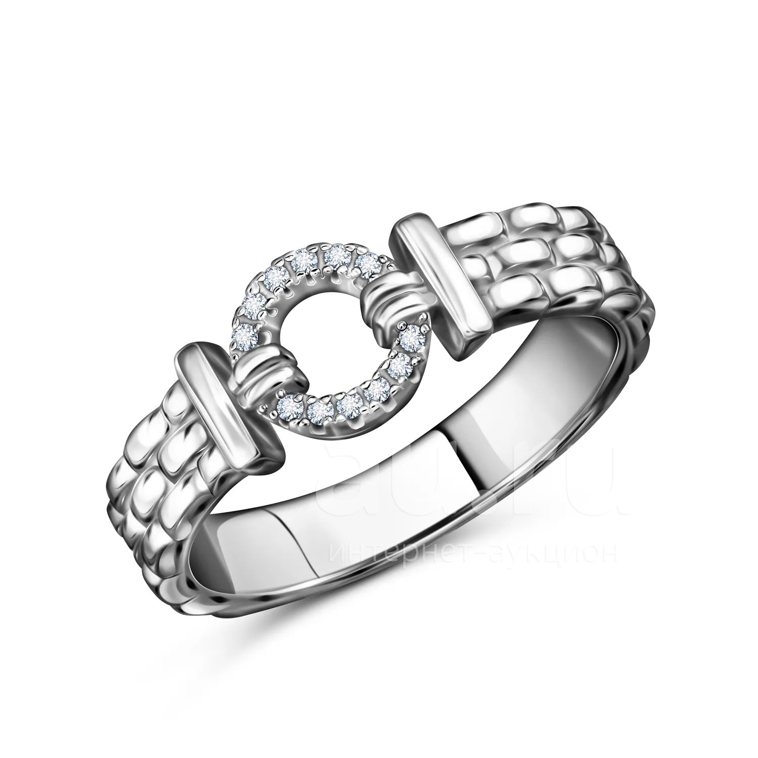 Серебряное кольцо с фианитами и родированием