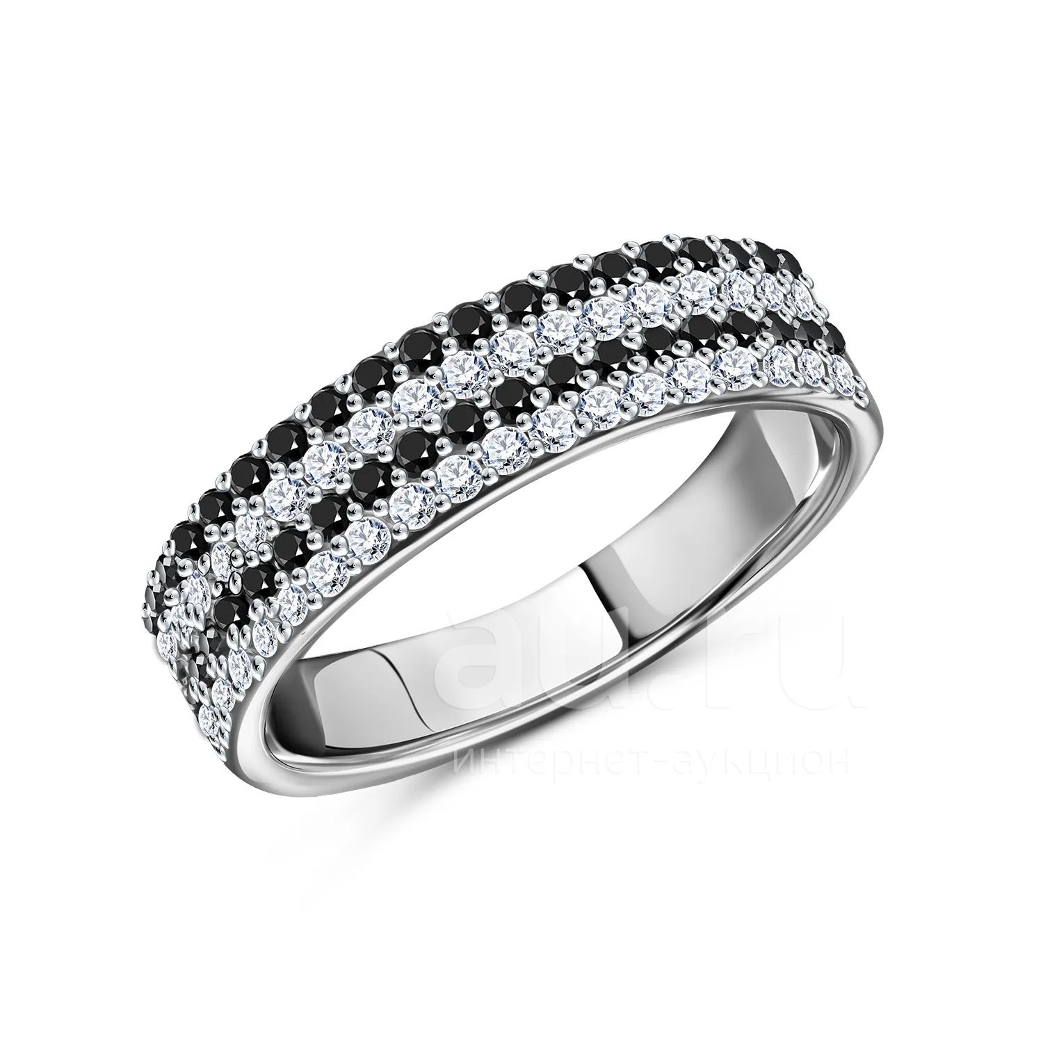 Серебряное кольцо с фианитами и родированием