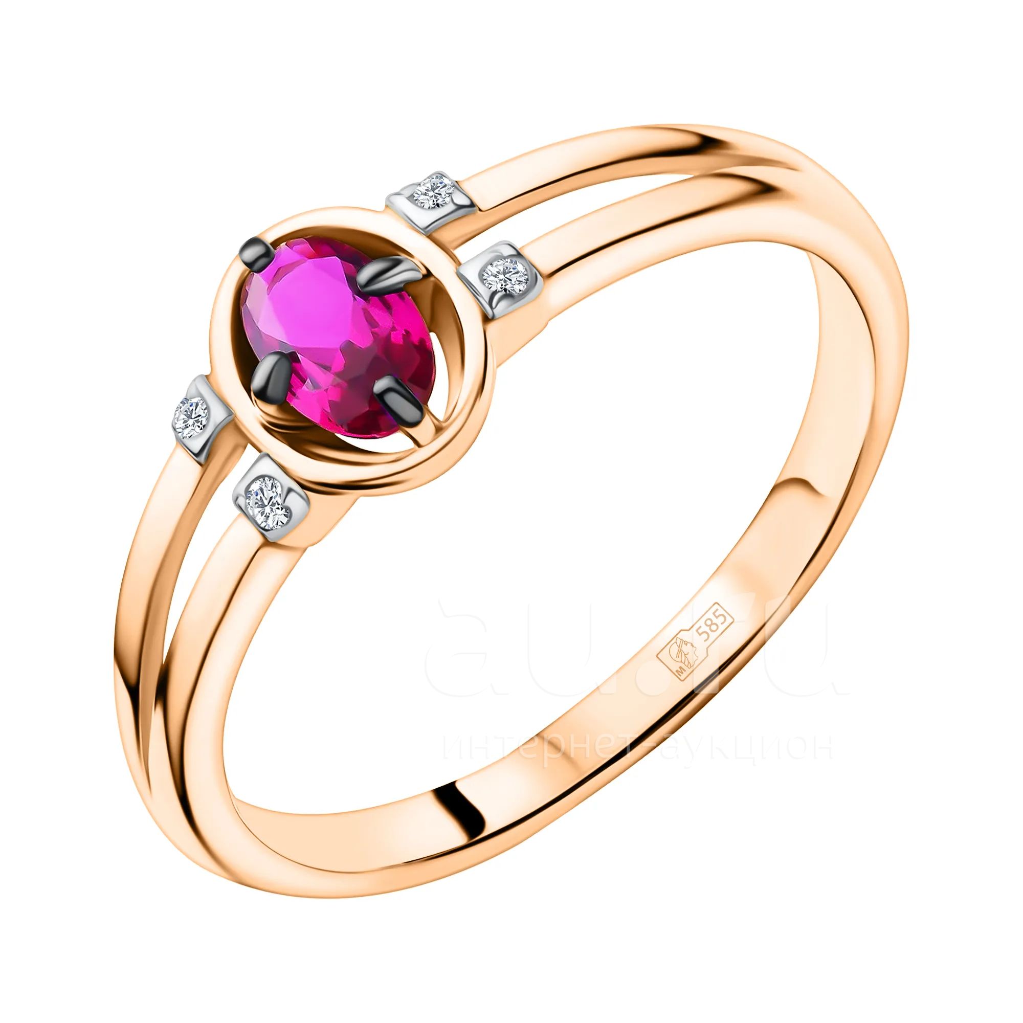 Золотое кольцо с рубином и бриллиантами